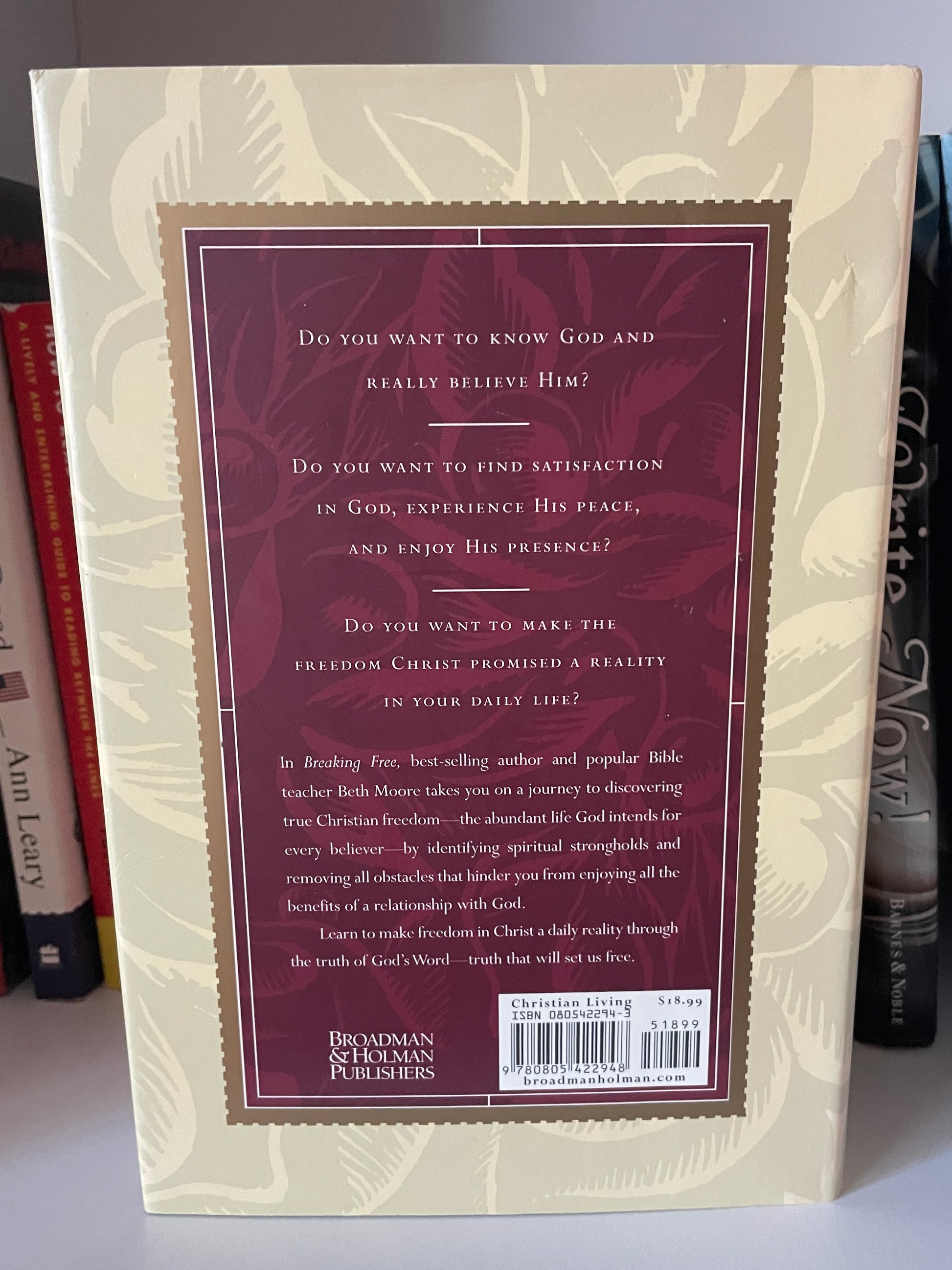 In Breaking Free, Beth Moore embarks on a study of selected passages from the Book of Isaiah, drawing several parallels between the captive Israelites and today's Christians, in order to show how to make freedom in Christ a daily reality. Moore teaches readers to remove obstacles that hinder freedom by identifying spiritual strongholds in their lives and overcoming them through the truth of God's Word—truth that will set us free.