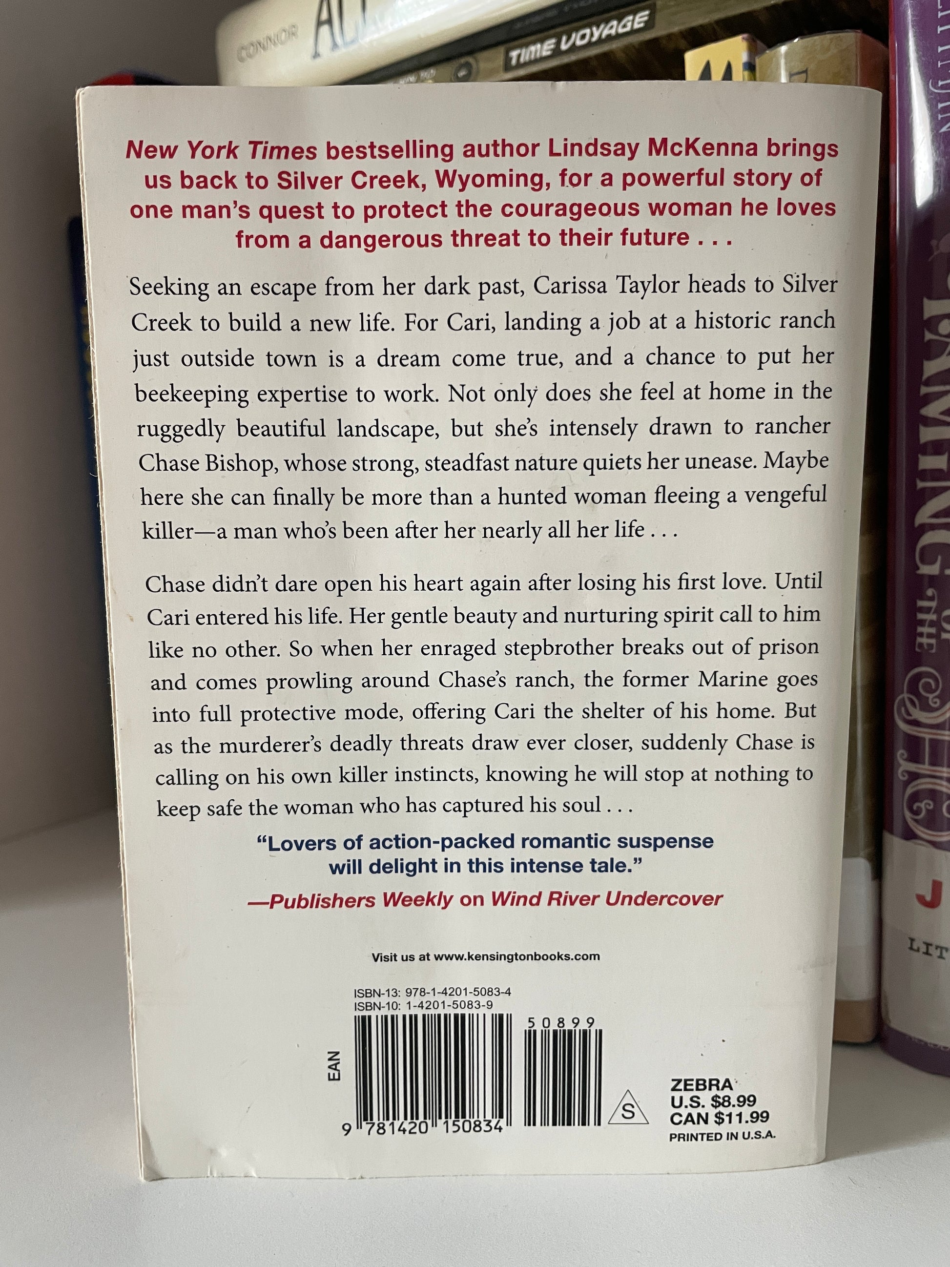 Seeking an escape from her dark past, Carissa Taylor heads to Silver Creek to build a new life. For Cari, landing a job at a historic ranch just outside town is a dream come true, and a chance to put her beekeeping expertise to work. Not only does she feel at home in the ruggedly beautiful landscape, but she’s intensely drawn to rancher Chase Bishop, whose strong, steadfast nature quiets her unease. Maybe here she can finally be more than a hunted woman fleeing a vengeful killer—a man who’s been after her nearly all her life . . .
