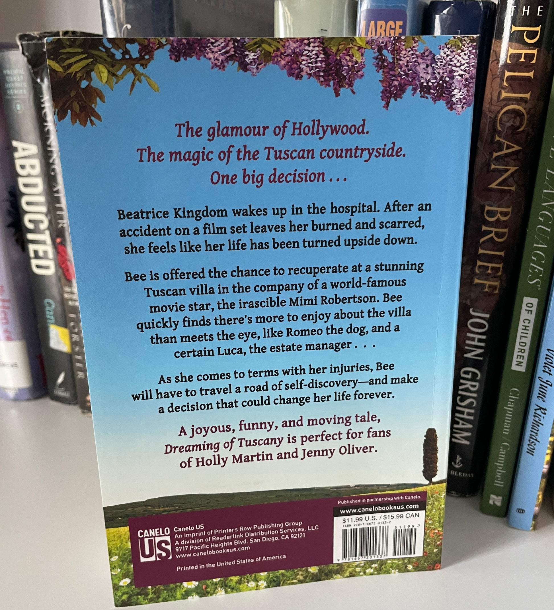 Bee Kingdom is offered the chance to recuperate at a Tuscan villa after an accident on a film set. Her company? The film's irascible, world-famous star, Mimi Robertson, who was also injured in the accident. Bee quickly finds there’s more to the villa than meets the eye, including the handsome and enigmatic Luca (and his dog, Romeo). As she comes to terms with her injuries, Bee will have to travel a road of self-discovery…and make a potentially life-changing choice.