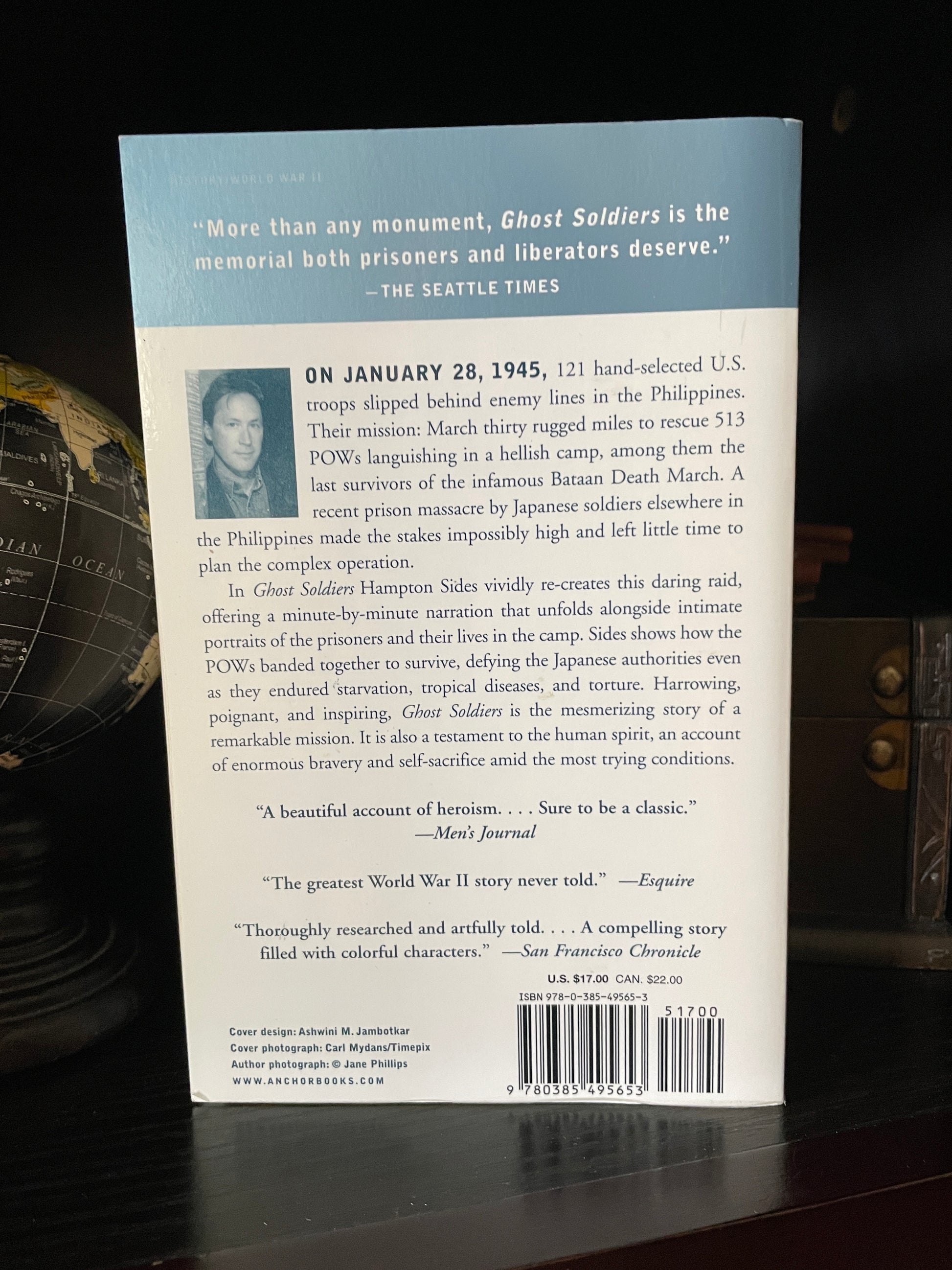 In Ghost Soldiers Hampton Sides vividly re-creates this daring raid, offering a minute-by-minute narration that unfolds alongside intimate portraits of the prisoners and their lives in the camp. Sides shows how the POWs banded together to survive, defying the Japanese authorities even as they endured starvation, tropical diseases, and torture. Harrowing, poignant, and inspiring, Ghost Soldiers is the mesmerizing story of a remarkable mission. It is also a testament to the human spirit, an account of enormous bravery and self-sacrifice amid the most trying conditions.