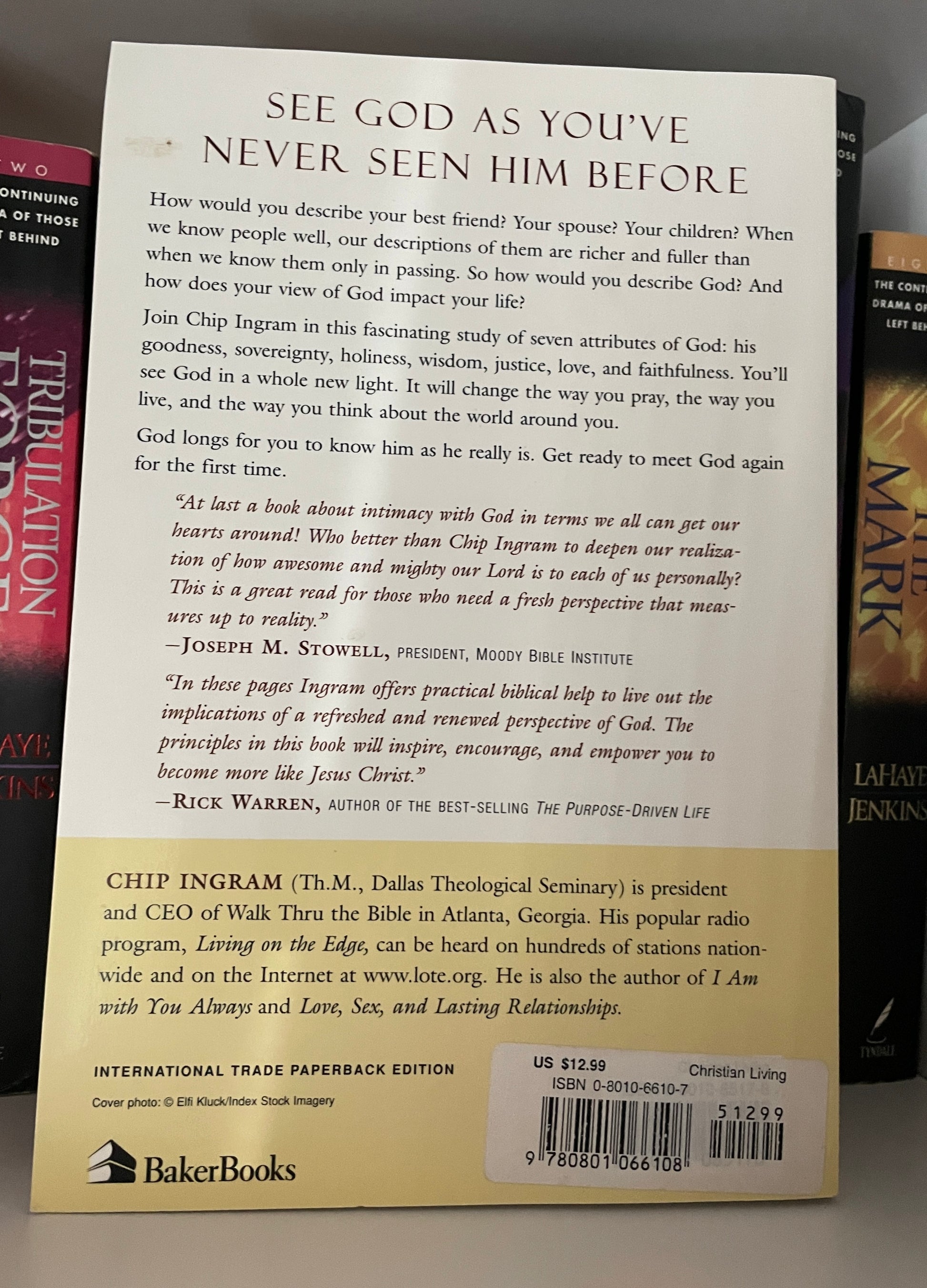 Join Chip Ingram in this fascinating study of seven attributes of God: his goodness, sovereignty, holiness, wisdom, justice, love, and faithfulness. Readers will see God in a whole new light and discover that our view of God impacts every decision in our lives. It will change the way we pray, the way we live, and the way we think about the world around us.