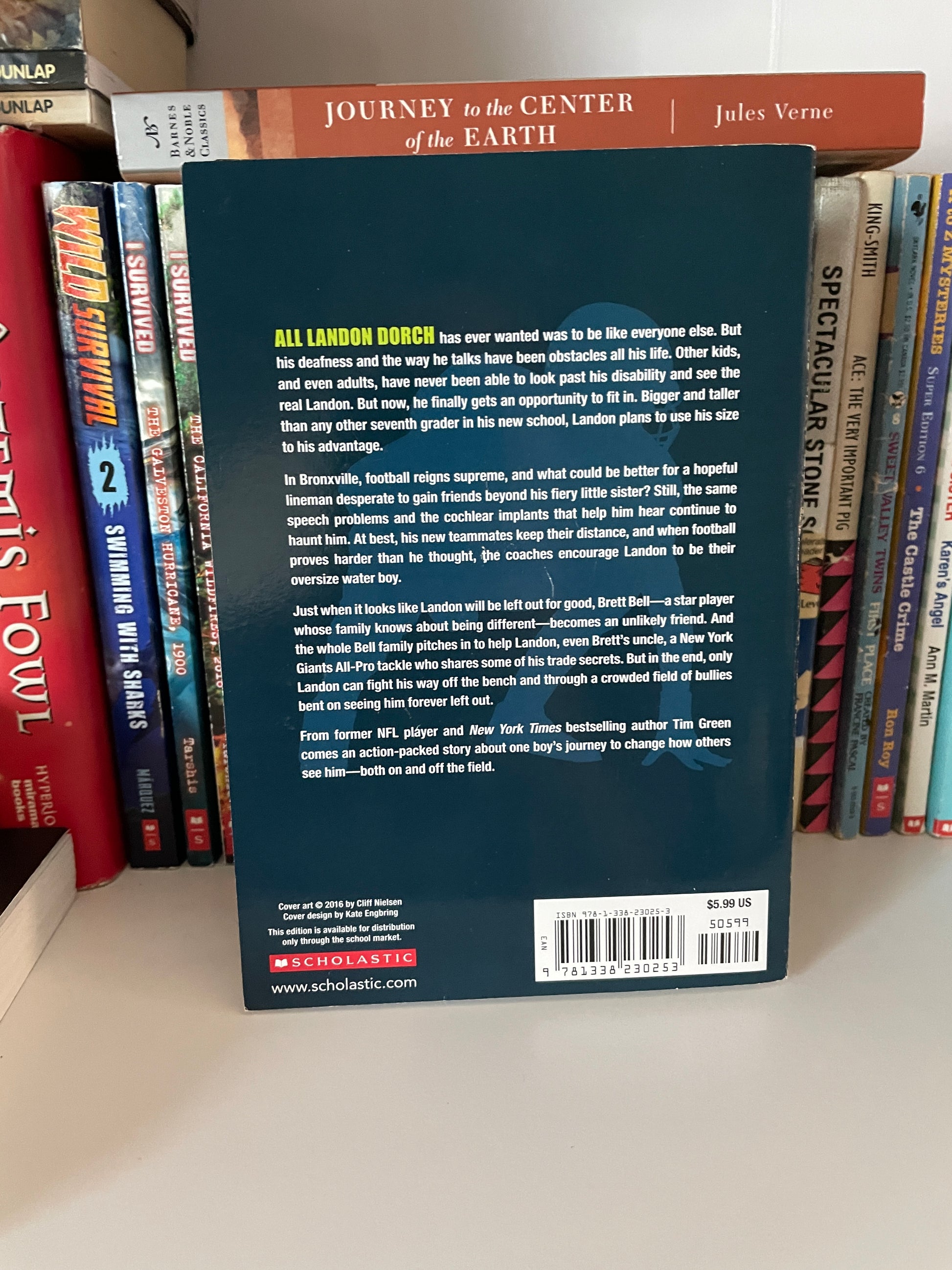 All Landon Dorch has ever wanted is to be like everyone else. His deafness and the way he talks have been obstacles all his life. But now he finally sees his chance to fit in. Bigger and taller than any other seventh grader in his new school, Landon plans to use his size to his advantage and join the school’s football team. But the same speech problems and the cochlear implants that help him hear continue to haunt him.