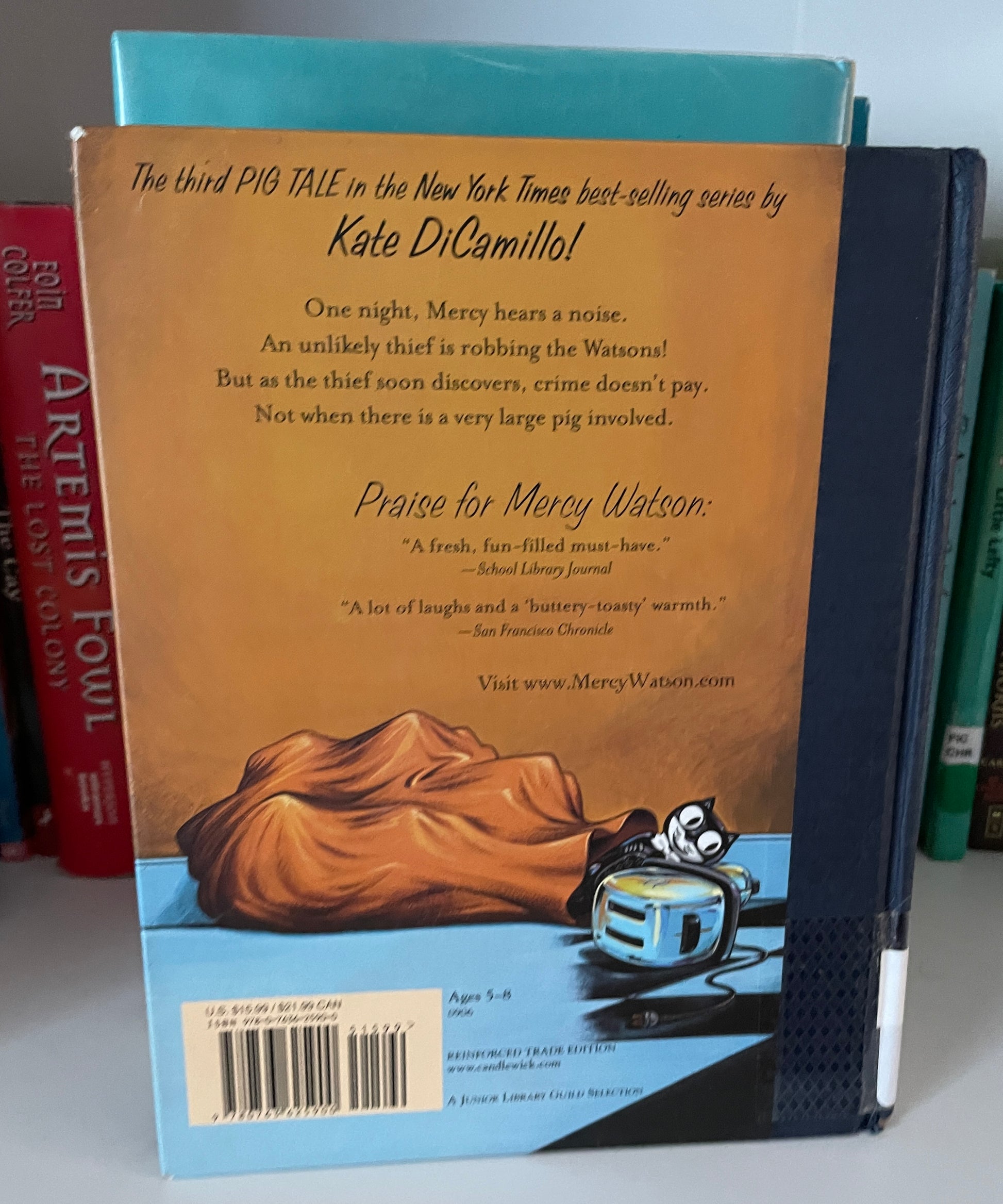 Leroy Ninker is a small man with a big dream: he wants to be a cowboy, but for now he's just a thief. In fact, Leroy is robbing the Watsons' kitchen right this minute! As he drags the toaster across the counter – screeeeeech – and drops it into his bag – clannngggg – little does he know that a certain large pig who loves toast with a great deal of butter is stirring from sleep. Even less could he guess that comedy of errors (not to mention the buttery sweets in his pocket) will soon lead this little man on the wild and raucous rodeo ride he's always dreamed of! Nosy neighbors, astonished firemen, a puzzled policeman, and the ever-doting Watsons return for a new tongue-in-snout adventure about Kate DiCamillo's delightfully single-minded pig.