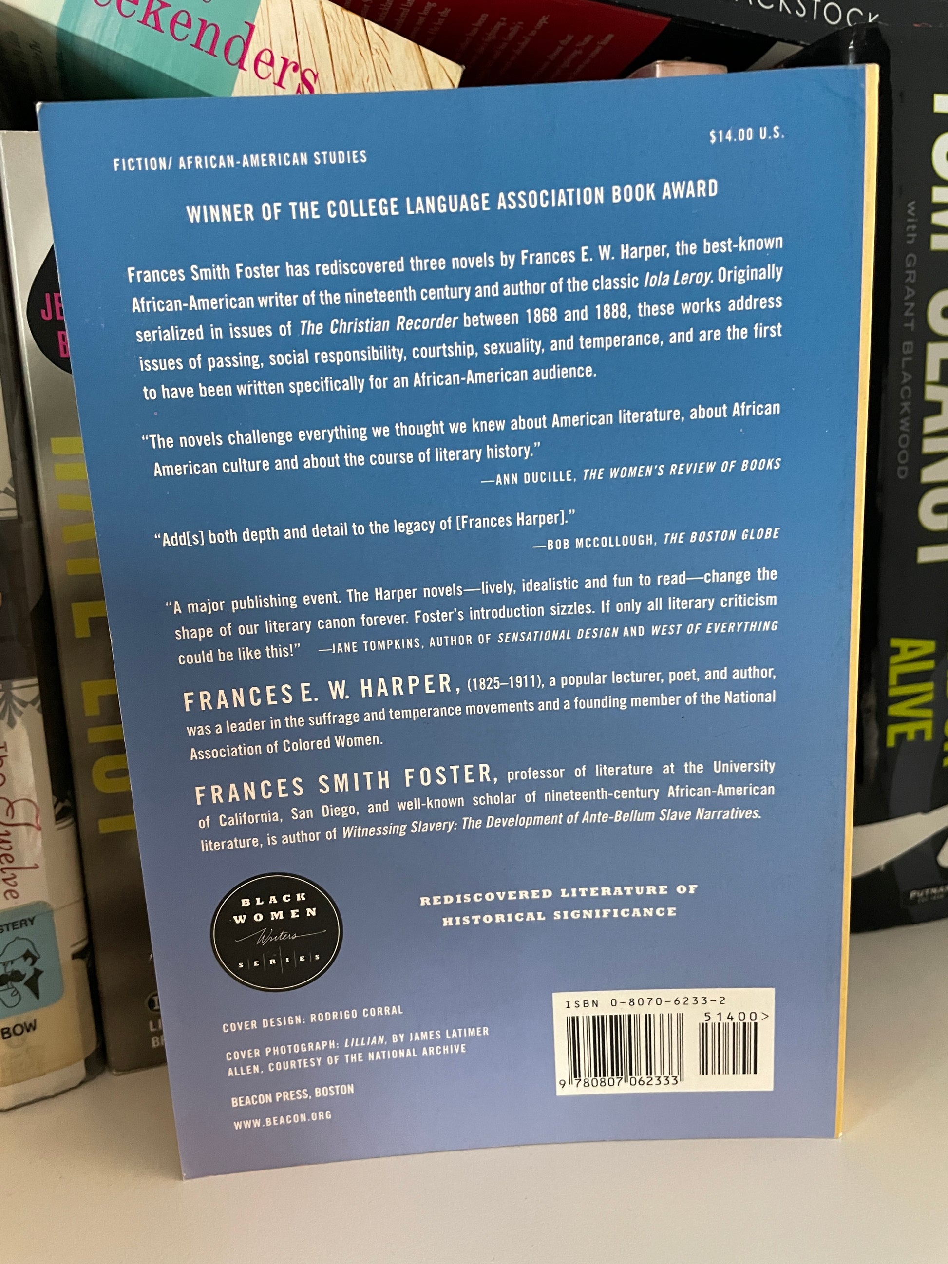 Frances Smith Foster has rediscovered three novels by Frances E. W. Harper, the best-known African-American writer of the nineteenth century and author of the classic Iola Leroy. Originally serialized in issues of The Christian Recorder between 1868 and 1888, these works address issues of passing, social responsibility, courtship, sexuality, and temperance, and are the first to have been written specifically for an African-American audience.