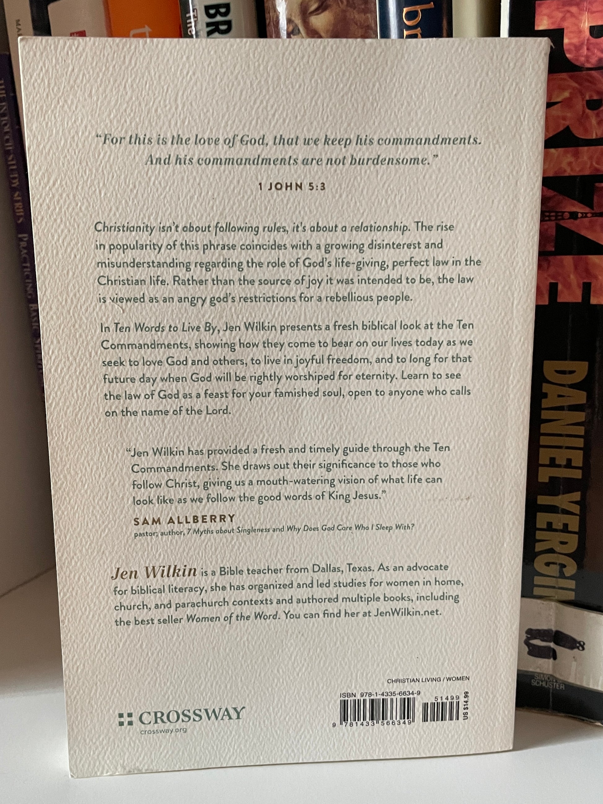 In Ten Words to Live By, Jen Wilkin presents a fresh biblical look at the Ten Commandments, showing how they come to bear on our lives today as we seek to love God and others, to live in joyful freedom, and to long for that future day when God will be rightly worshiped for eternity. Learn to see the law of God as a feast for your famished soul, open to anyone who calls on the name of the Lord.