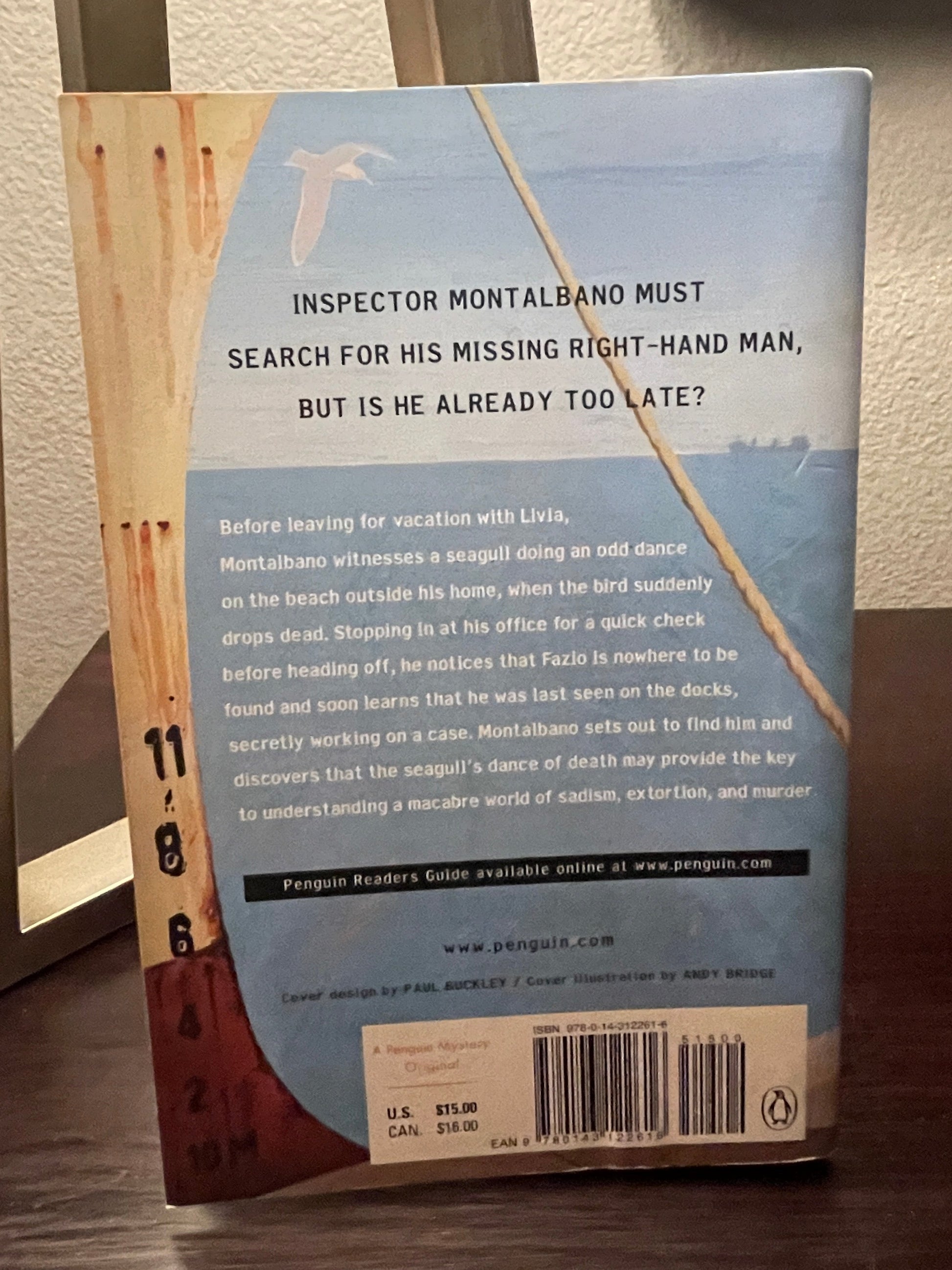 Before leaving for vacation with Livia, Montalbano witnesses a seagull doing an odd dance on the beach outside his home, when the bird suddenly drops dead. Stopping in at his office for a quick check before heading off, he notices that Fazio is nowhere to be found and soon learns that he was last seen on the docks, secretly working on a case. Montalbano sets out to find him and discovers that the seagull's dance of death may provide the key to understanding a macabre world of sadism, extortion, and murder.