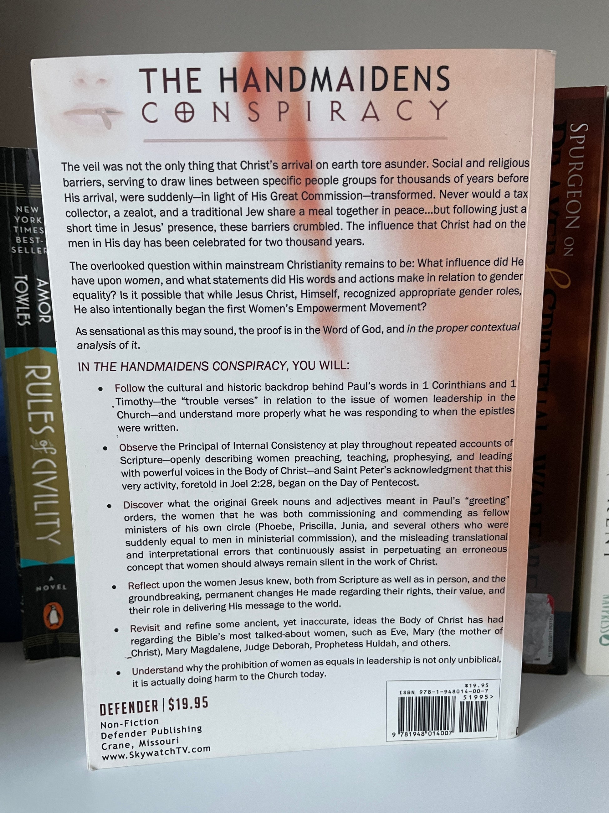 The veil was not the only thing that Christ s arrival on earth tore asunder. Social and religious barriers, serving to draw lines between specific people groups for thousands of years before His arrival, were suddenly in light of His Great Commission transformed. Never would a tax collector, a zealot, and a traditional Jew share a meal together in peace...but following just a short time in Jesus presence, these barriers crumbled. The influence that Christ had on the men in His day has been celebrated for two thousand years. The overlooked question within mainstream Christianity remains to be: What influence did He have upon women, and what statements did His words and actions make in relation to gender equality? Is it possible that while Jesus Christ, Himself, recognized appropriate gender roles, He also intentionally began the first Women s Liberation Movement? As sensational as this may sound, the proof is in the Word of God, and in the proper contextual analysis of it. IN THE HANDMAIDEN CONSPIRACY, YOU WILL: Follow the cultural and historic backdrop behind Paul s words in 1 Corinthians and 1 Timothy the trouble verses in relation to the issue of women leadership in the Church and understand more properly what he was responding to when the epistles were written. Observe the Principal of Internal Consistency at play throughout repeated accounts of Scripture openly describing women preaching, teaching, prophesying, and leading with powerful voices in the Body of Christ and Saint Peter s acknowledgment that this very activity, foretold in Joel 2:28, began on the Day of Pentecost. Discover what the original Greek nouns and adjectives meant in Paul s greeting orders, the women that he was both commissioning and commending as fellow ministers of his own circle (Phoebe, Priscilla, Junia, and several others who were suddenly equal to men in ministerial commission), and the misleading translational and interpretational errors that continuously assist in perpetuating an erroneous concept that women should always remain silent in the work of Christ. Reflect upon the women Jesus knew, both from Scripture as well as in person, and the groundbreaking, permanent changes He made regarding their rights, their value, and their role in delivering His message to the world. Revisit and refine some ancient, yet inaccurate, ideas the Body of Christ has had regarding the Bible s most talked-about women, such as Eve, Mary (the mother of Christ), Mary Magdalene, Judge Deborah, Prophetess Huldah, and others. Understand why the prohibition of women as equals in leadership is not only unbiblical, it is actually doing harm to the Church today.