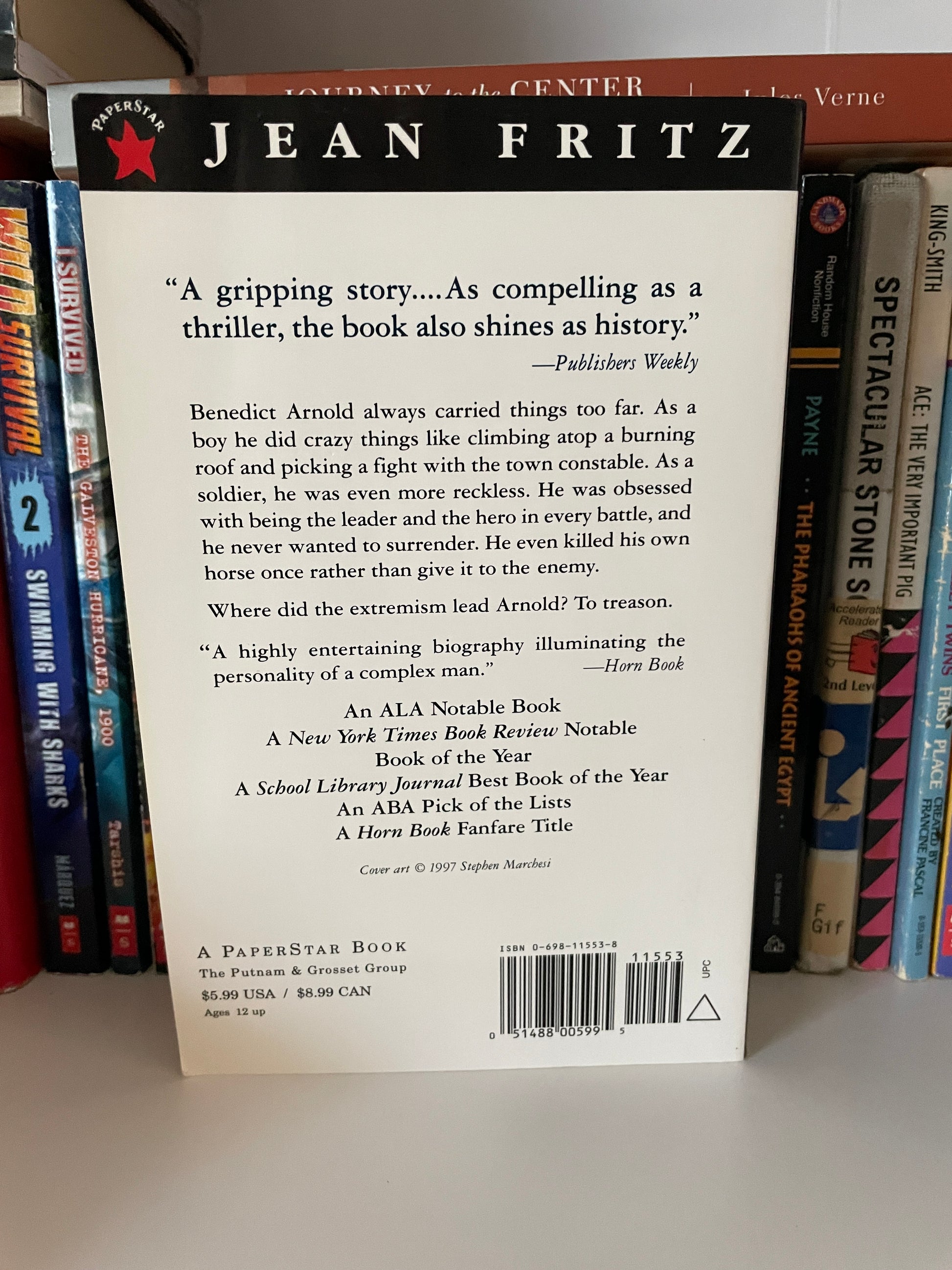 America's most notorious traitor is brought to life as Jean Fritz relays the engrossing story of Benedict Arnold -- a man whose pride, ambition, and self-righteousness drove him to commit the heinous crime of treason against the United States during the American Revolution.