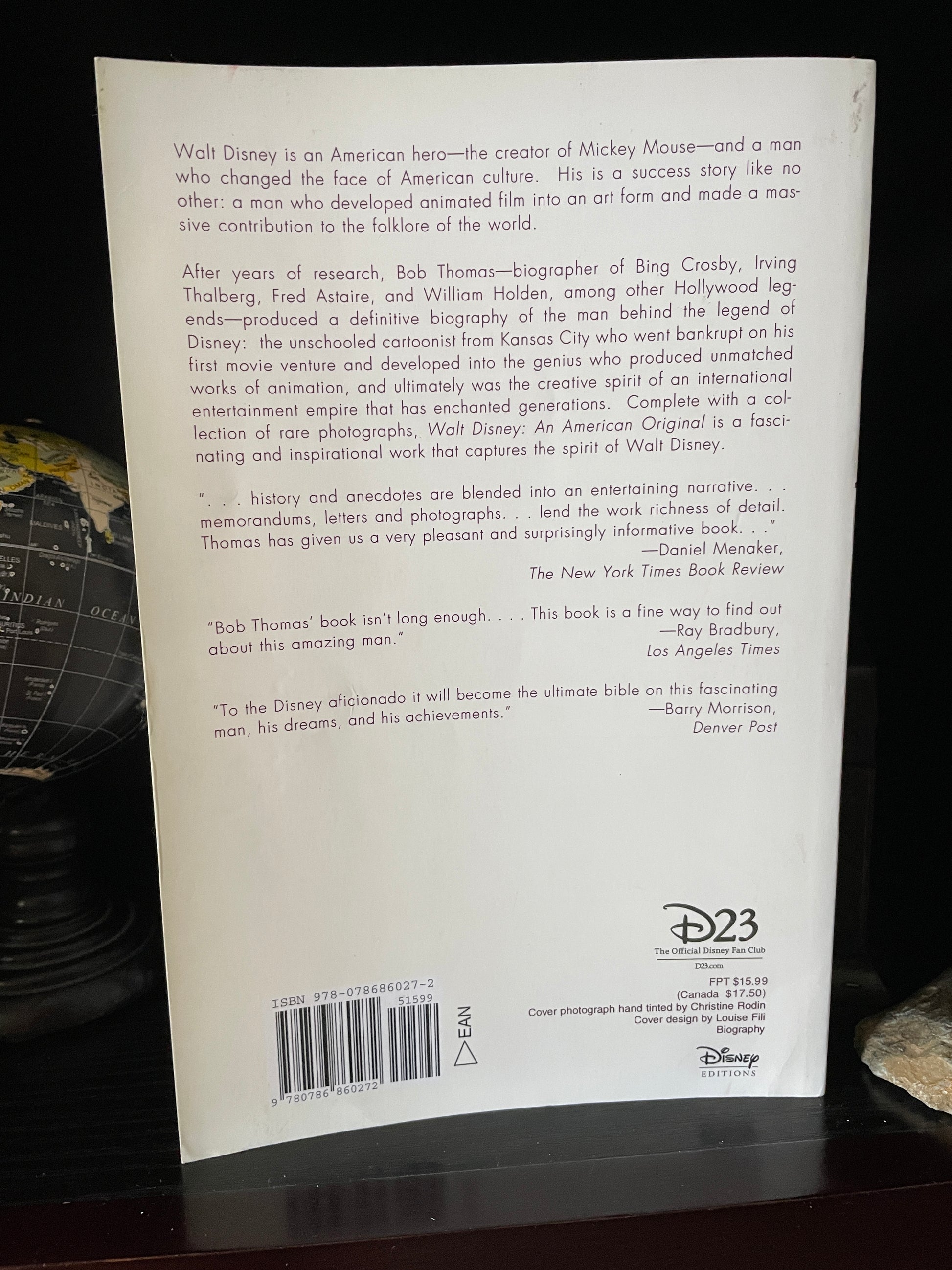 After years of research, respected Hollywood biographer Bob Thomas produced a definitive biography of the man behind the legend of Disney: the unschooled cartoonist from Kansas City who when bankrupt on his first movie venture and developed into the genius who produced unmatched works of animation, and ultimately was the creative spirit of an international entertainment empire that has enchanted generations. Complete with a collection of rare photographs, Walt Disney: An American Original is a fascinating and inspirational work that captures the spirit of Walt Disney.